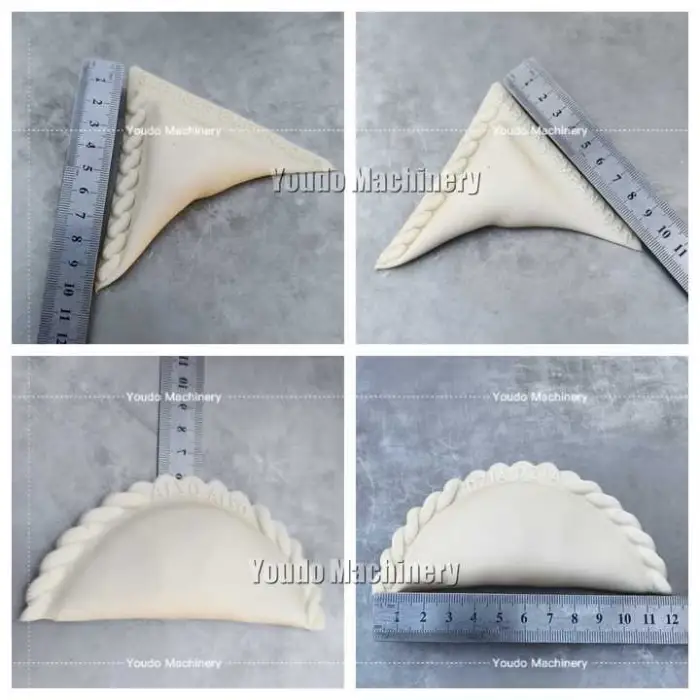 The Automatic Samosa Meat Empanada Pasta Italian Ravioli Dumpling Making Machine can make a variety of products including samosas, meat empanadas, pasta, Italian ravioli, and dumplings.
