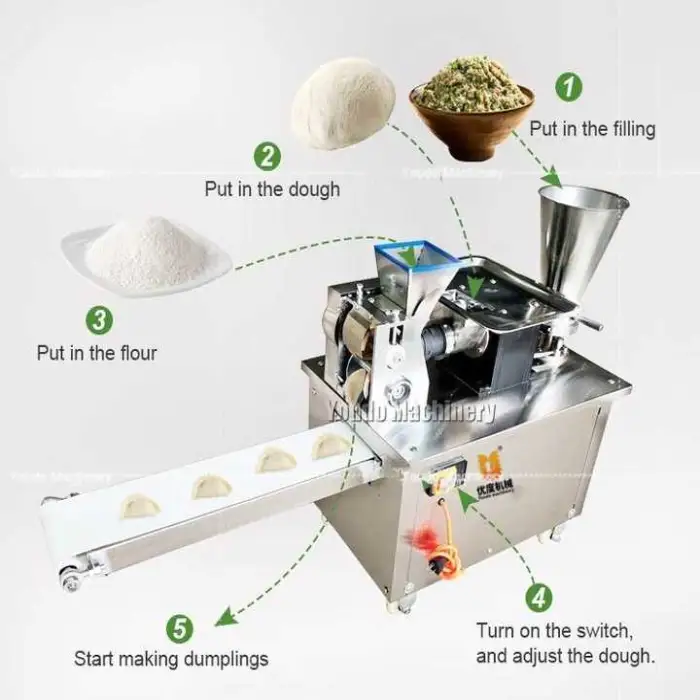 The automatic operation allows for efficient production, minimizing manual effort and streamlining the dumpling-making process.