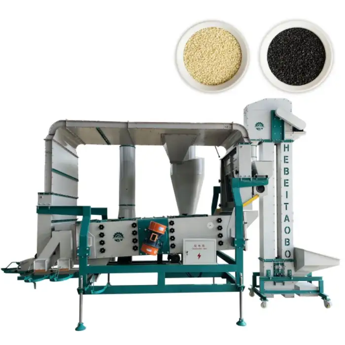 The machine is designed primarily for sesame seeds but can also effectively clean other grains, beans, and similar products.