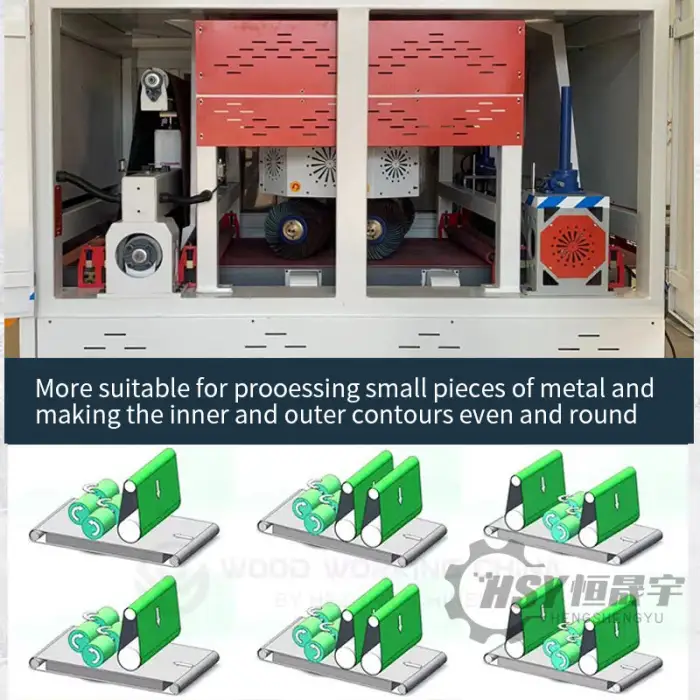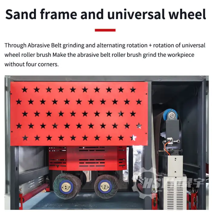 This machine is designed to work with various types of sheet metals, including steel, aluminum, and stainless steel, making it ideal for a wide range of metal finishing applications.