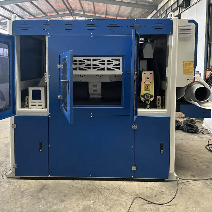 The core components of the machine include a PLC (Programmable Logic Controller), bearings, and a motor, which work together to provide precision and efficiency.