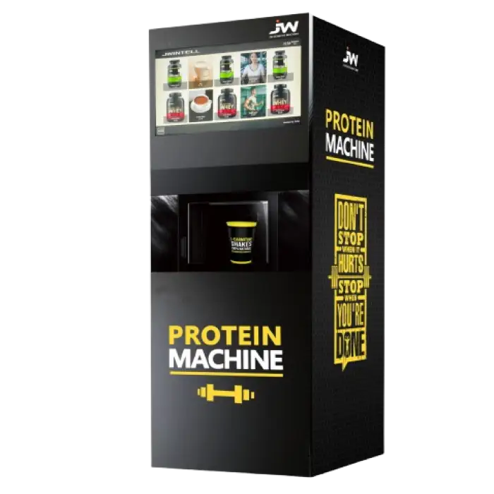 The machine produces ready-to-serve protein shakes and a variety of hot and cold coffees. Drink recipes and ingredient formulations can be customized to your needs.