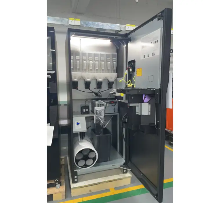 The machine is designed to integrate with secure, industry-standard cashless payment processors. Specific encryption and compliance (e.g., PCI) depend on the payment provider and integration chosen.