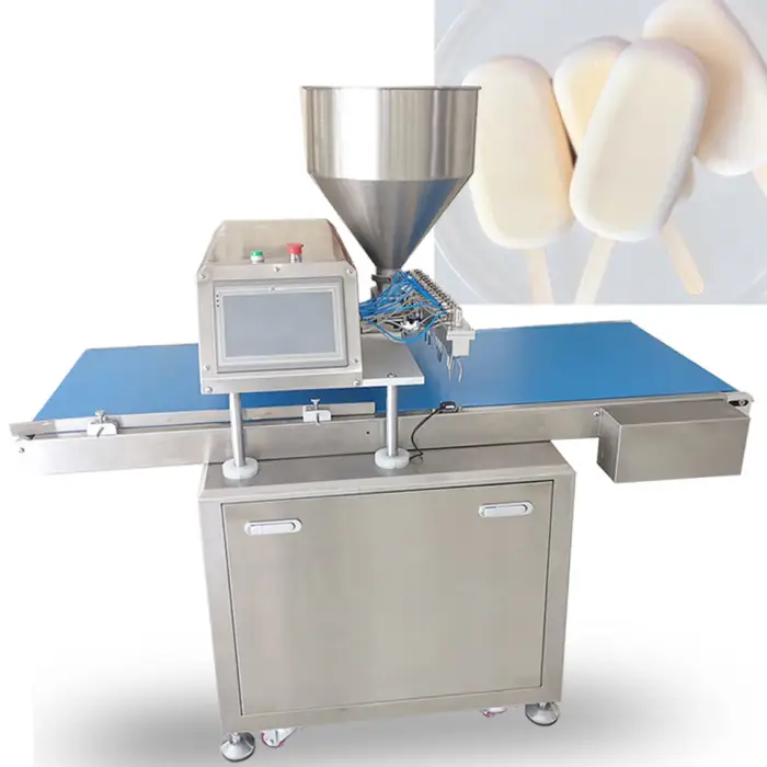 The machine offers high-efficiency popsicle production, allowing for quick and consistent output.