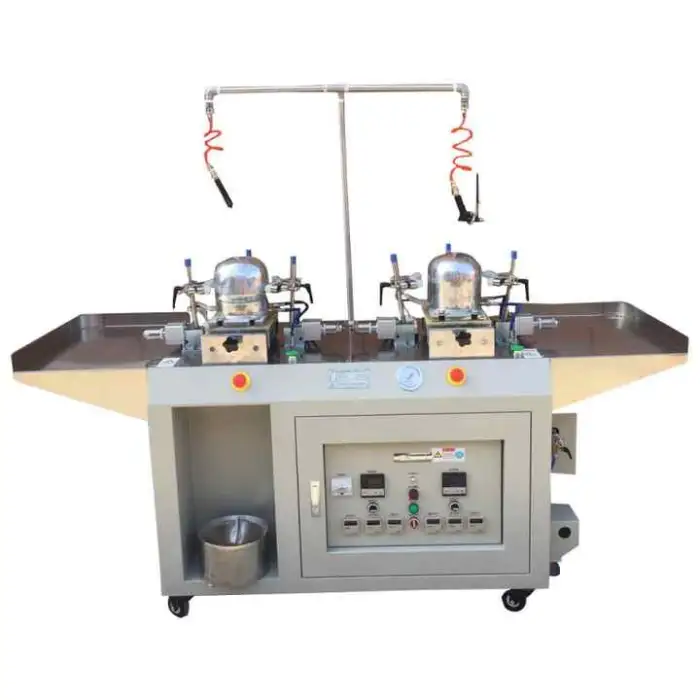 Key features include two heads for faster ironing, automatic operation, high efficiency, compact design, and durable construction.
