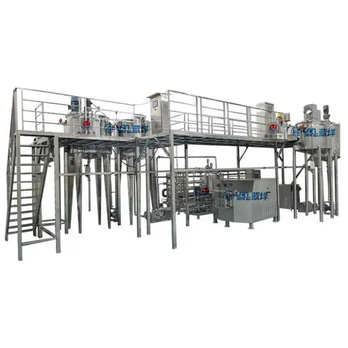 The integrated system combines mixing, cooking, filling, and cooling processes, which streamlines production and reduces labor costs.
