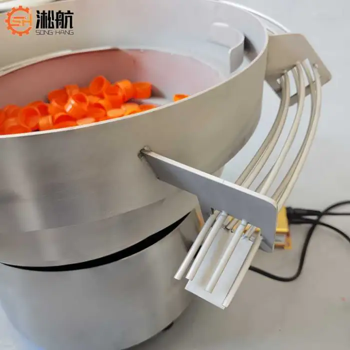 The Automatic Vibrating System Bottle Cap Bowl Feeder is designed to efficiently feed and sort bottle caps for capping machines, ensuring a continuous supply of caps during the packaging process.