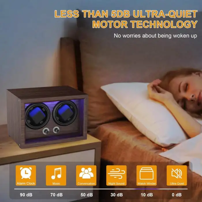 The watch winder operates using a quiet motor and offers four rotation modes, allowing you to customize the winding process according to your watch's requirements.