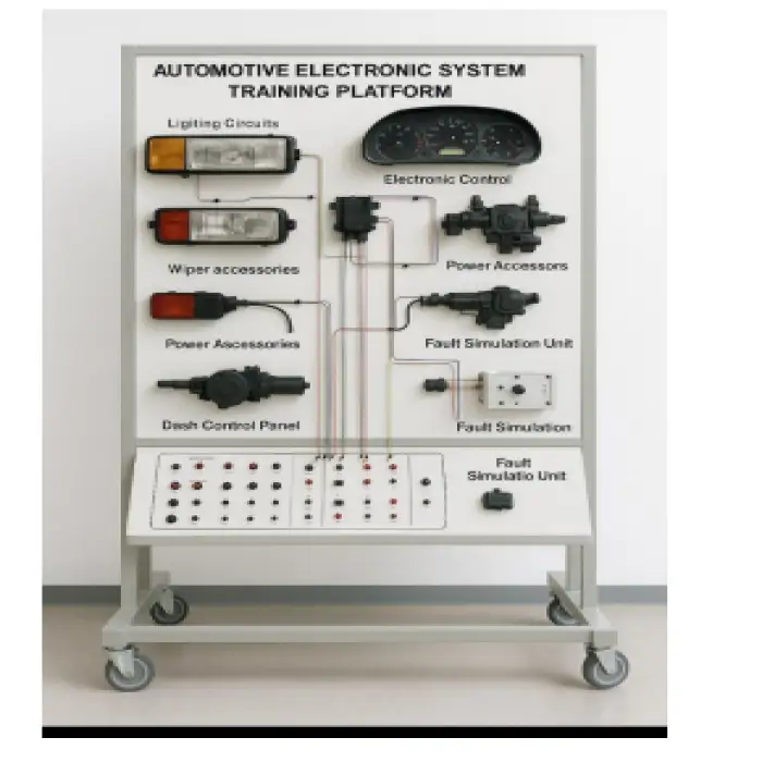 A manual switch-type Fault Setting Module is provided to inject or simulate common faults. This allows instructors to create repeatable fault scenarios for troubleshooting practice without damaging the actual ECUs.