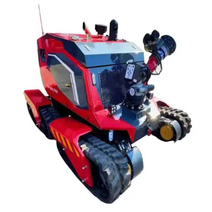 The robot features advanced automatic fire monitoring technology that detects fire hazards and responds without human intervention.