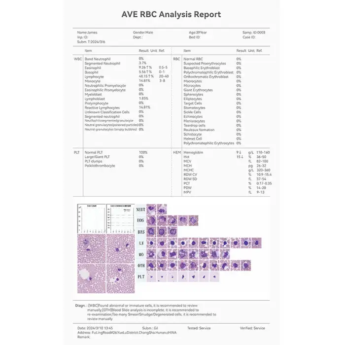 AVE Automated Blood Cell Morphology Analyzer Lab Clinical Blood Analyzer Equipment for Blood Testing