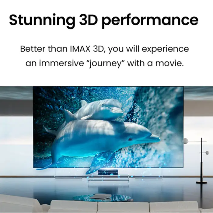 The projector delivers native 4K resolution (3840 x 2160) for detailed, sharp images.
