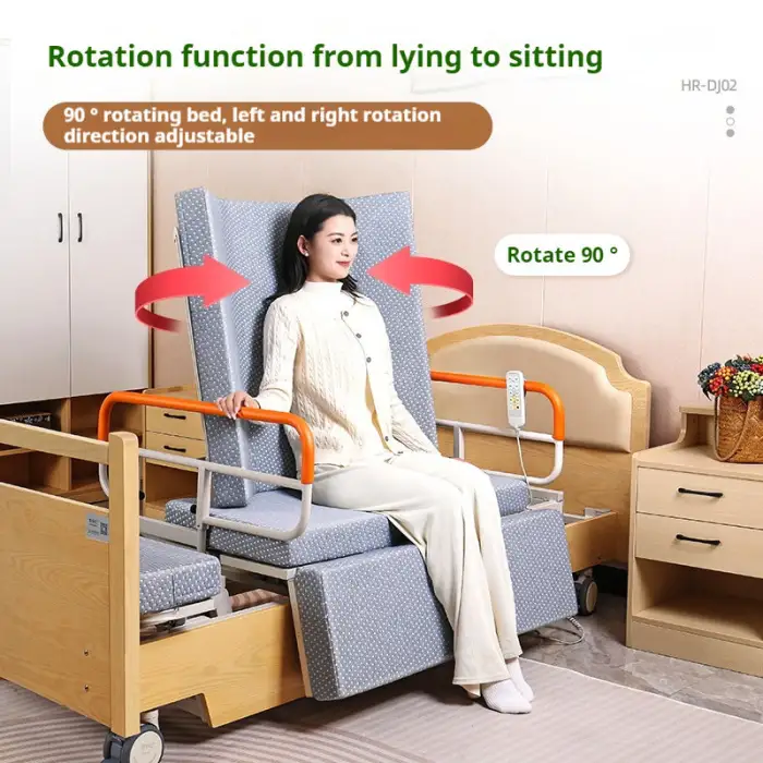 The 90° rotating function allows caregivers to easily position the patient for comfort and accessibility, making it simpler to assist with daily activities.