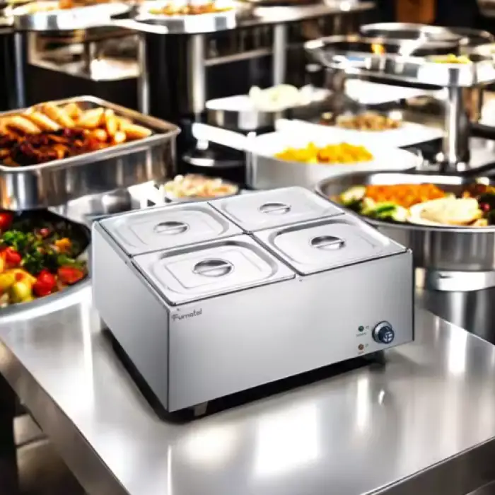 The Bain Marie features a simple control mechanism for temperature management, ensuring your food stays at the desired warmth.