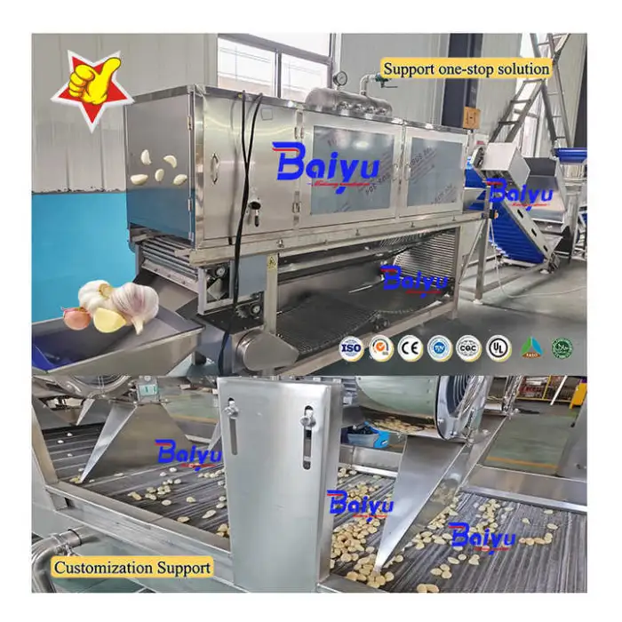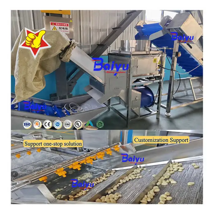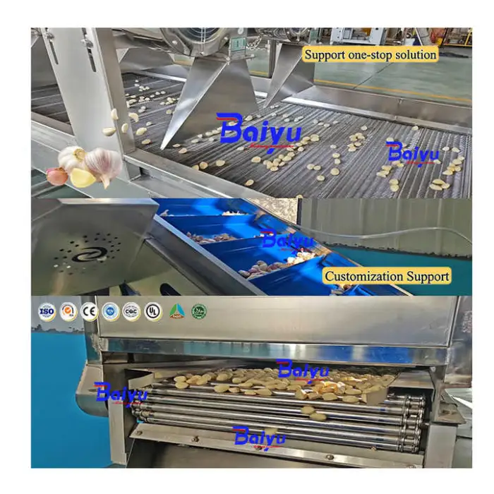 The primary function of the Baiyu Garlic Production Line is to efficiently peel, sort, and pack garlic, making it ideal for factories and food processing plants that handle large quantities of garlic.