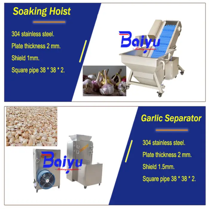 The machine can produce peeled garlic, garlic paste, and garlic powder.