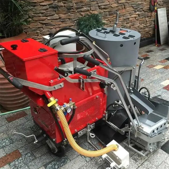 The machine can be used for road marking on highways, parking lot line marking, marking sports fields, creating safety lines, and maintaining traffic markings.