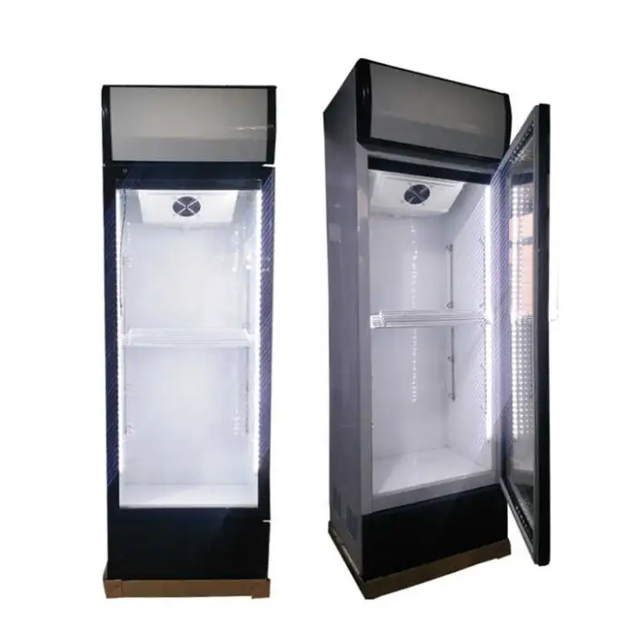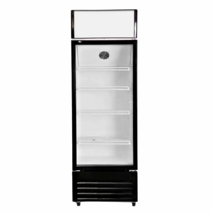 This is a single-temperature upright display fridge with a mechanical temperature controller.