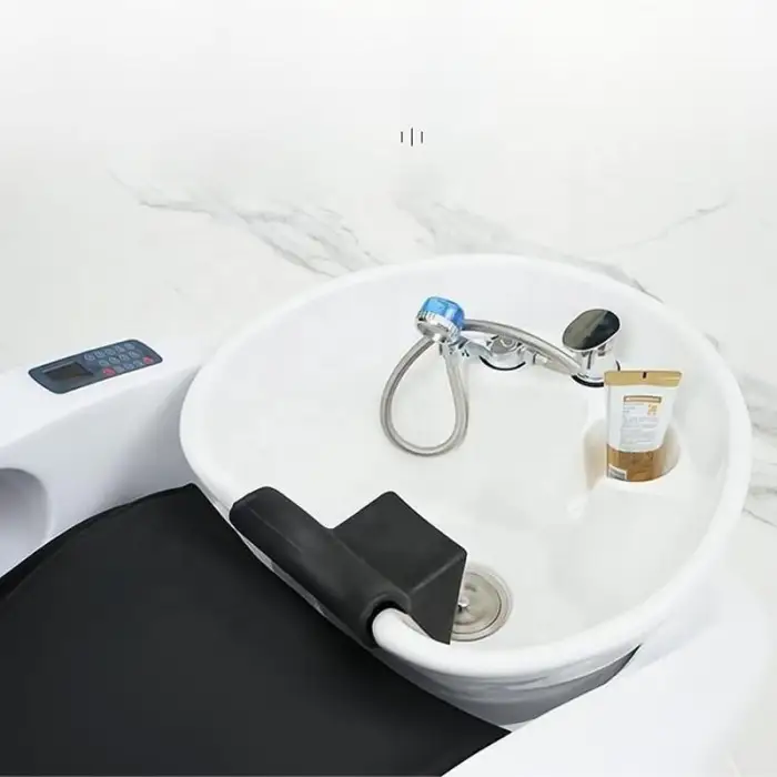 Barbershop Salon Furniture Electric Massage Bed White Diamond Shampoo Chair With Station