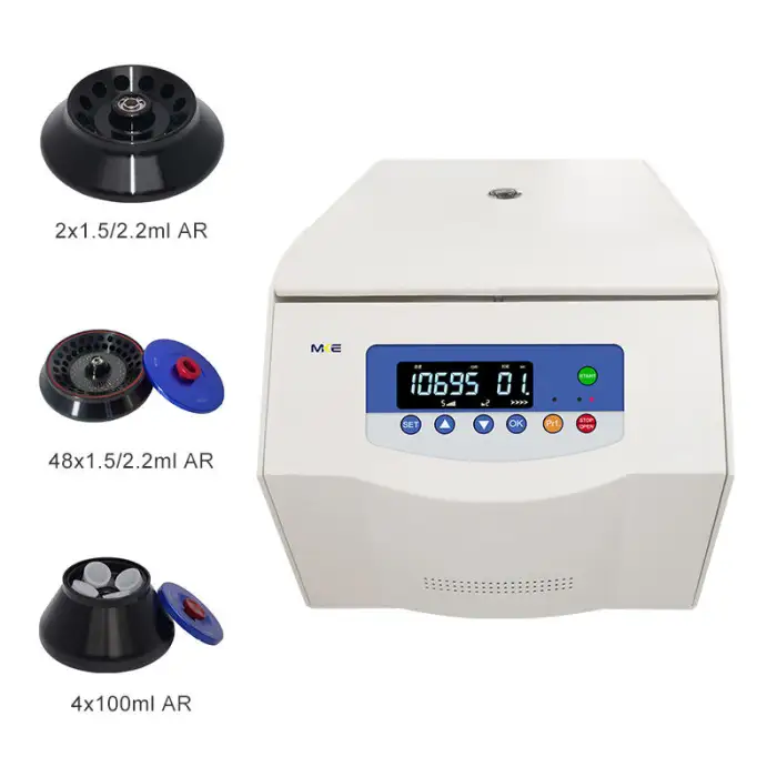 The T20-M supports tubes and containers up to 100 mL. Smaller tube sizes (e.g., 15 mL, 50 mL) can normally be used with appropriate adapters. It is suitable for blood, clinical, veterinary, food, and cosmetic samples—always follow biosafety and sample‑specific protocols.