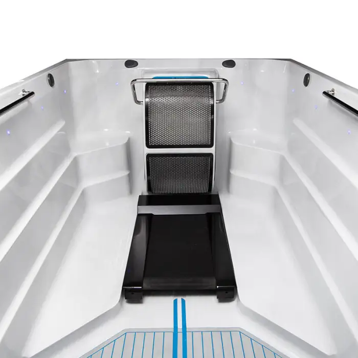 The treadmill allows users to enjoy a great workout while being immersed in the relaxing environment of the swim spa.