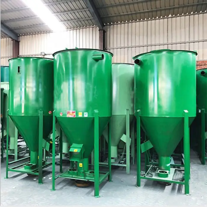 The mixer has a high mixing capacity of up to 2 tons per hour, allowing for efficient feed preparation.