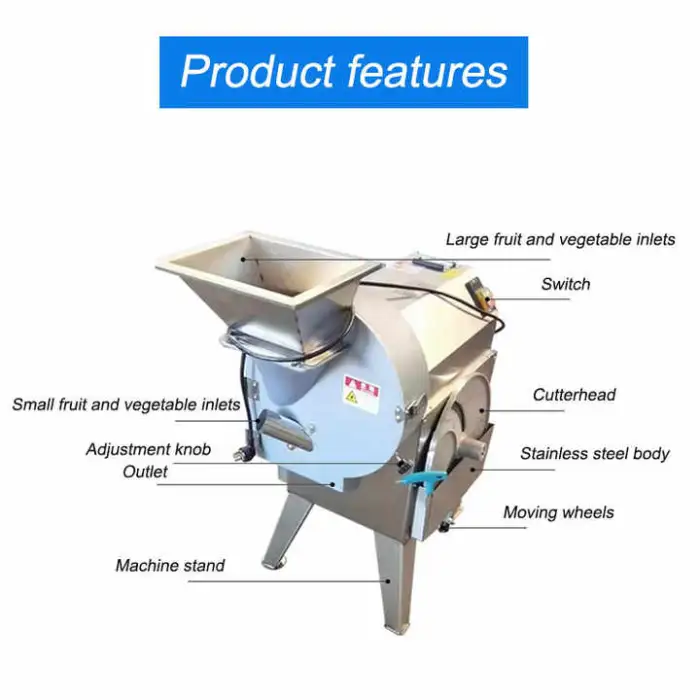 It's a high-capacity food cutting machine designed to slice, dice, cube and shred lemons, pineapples and a wide range of vegetables. Ideal for restaurants, catering, juice shops, salad bars, home meal prep and food processing.