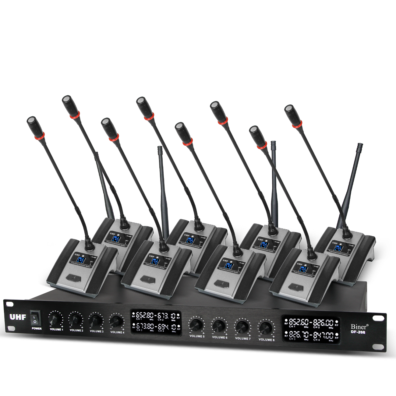 Biner DF208 Uhf 8 Channels Professional Desktop Uhf Wireless Gooseneck Microphone For Conference Room