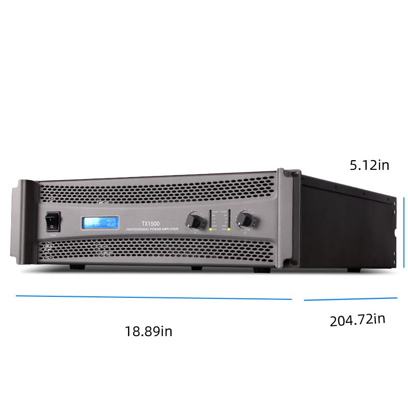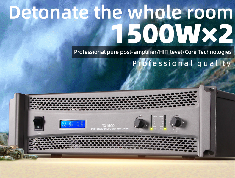 The Biner TX15000 amplifier has a power output of 1500W per channel at 8Ω and 1700W per channel at 4Ω.