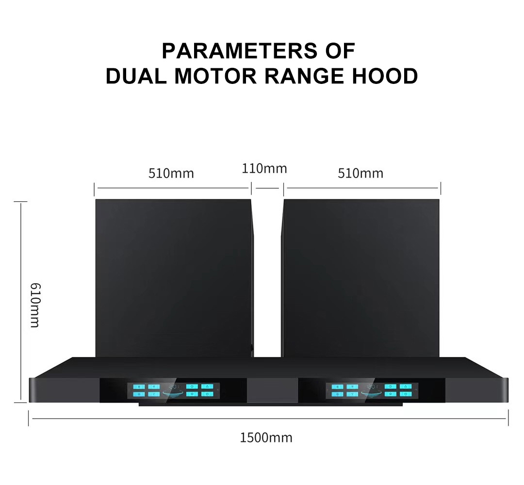 This range hood is offered with high-efficiency copper motor(s) for durability and reliable performance. Some configurations use a dual-motor setup to provide larger suction — verify the exact motor configuration with your seller or product listing.