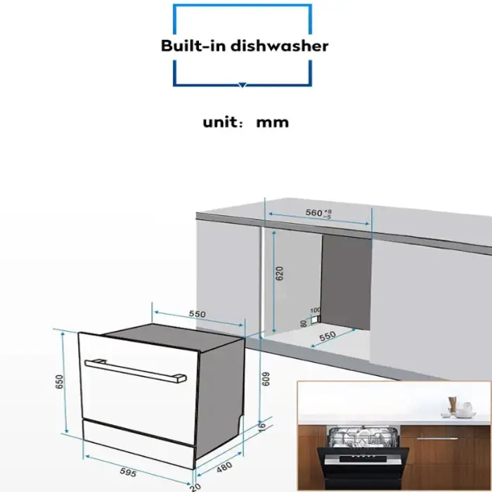 The dishwasher can wash up to 8 sets of tableware in one cycle, making it ideal for small families, households, or businesses.