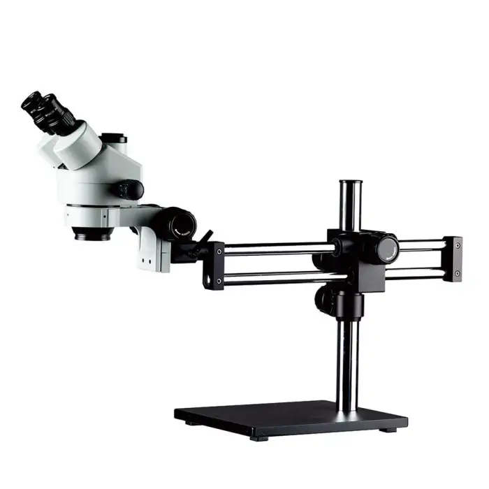 The microscope has a standard magnification ratio of 7x-45x, with an upper limit of 3.5x-270x for enhanced detail.