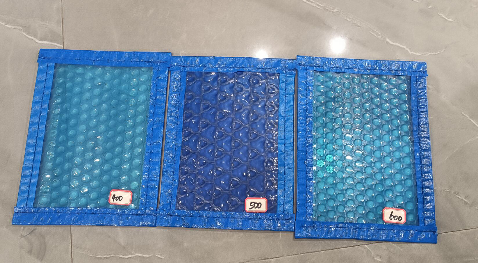 The cover is made of PVC with a bubble cushion design, which enhances its insulation and durability.