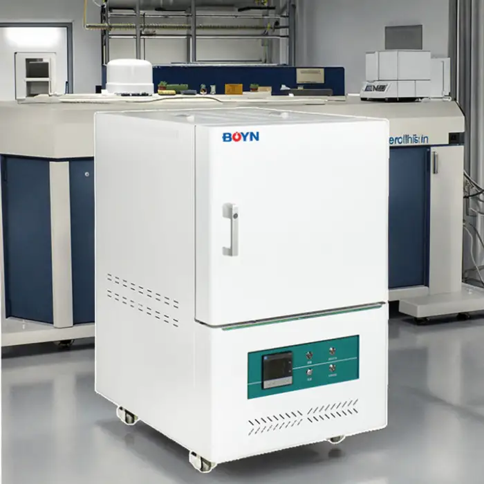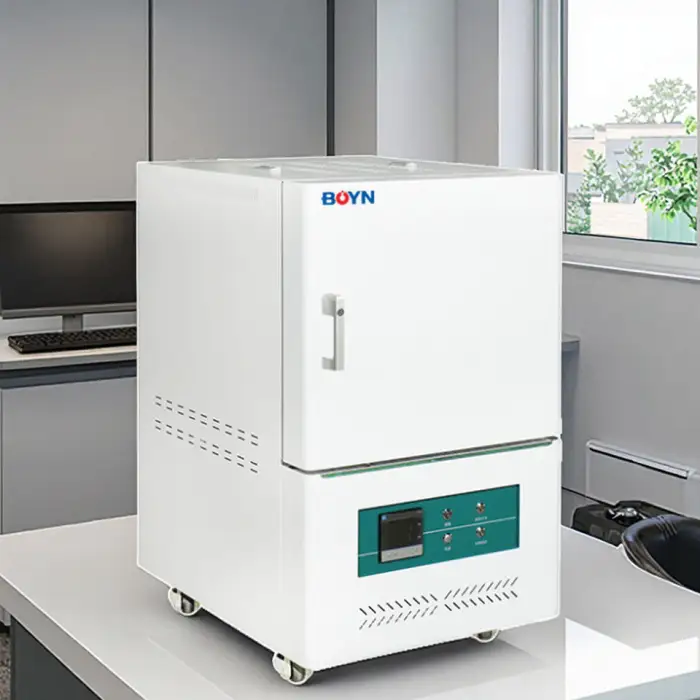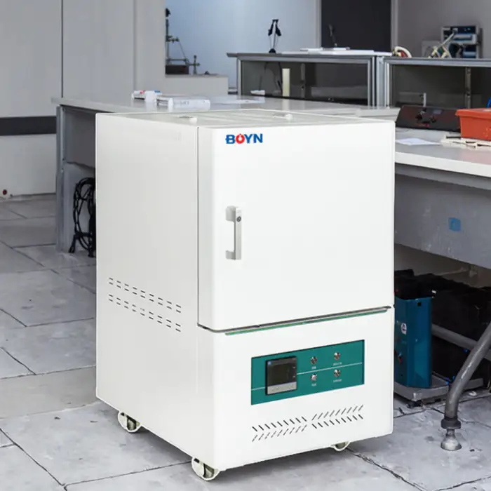 The furnace includes built-in safety features such as an overtemperature alarm and leakage protection.