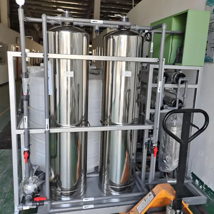 The system uses advanced reverse osmosis technology to remove impurities and ensure the produced water is safe for drinking.