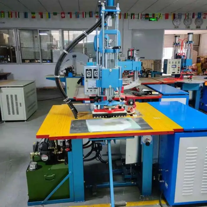 The machine operates at a frequency of 27.12 KHz for high-frequency welding.