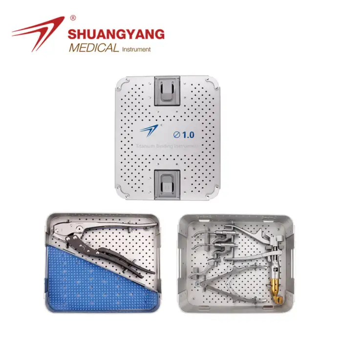 Key features include its reusability, strong titanium cable for binding, lightweight yet sturdy materials, and ease of use in surgical procedures.