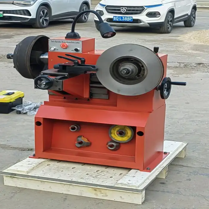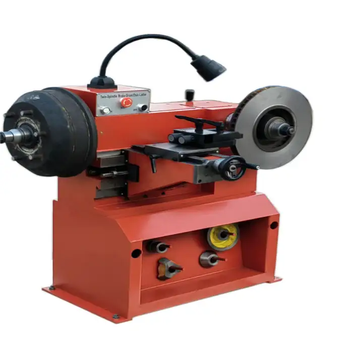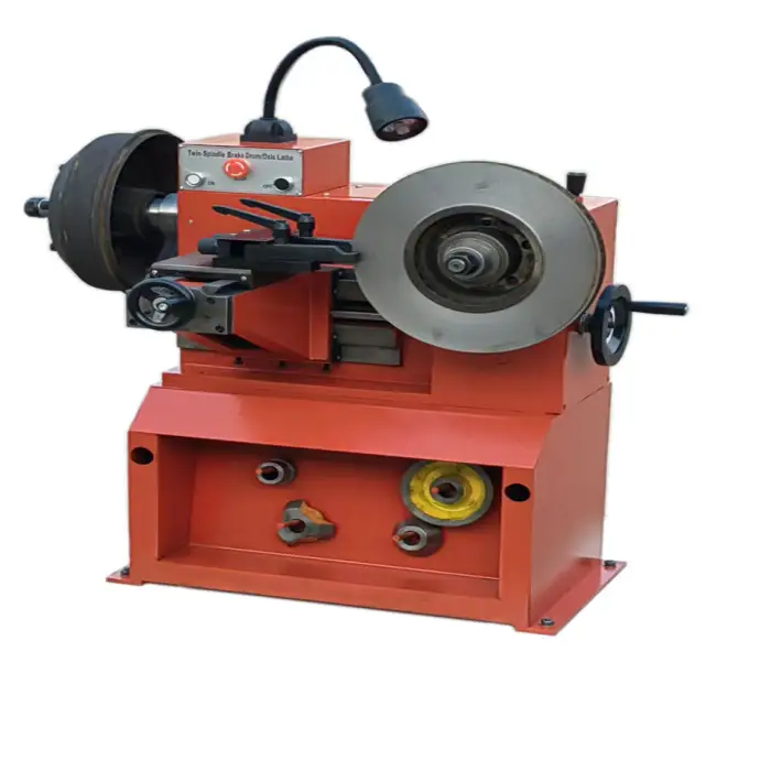 The Brake Drum Disc Cutting Lathe Machine is equipped with standard safety features, including emergency stop buttons and guards to protect the operator during use.