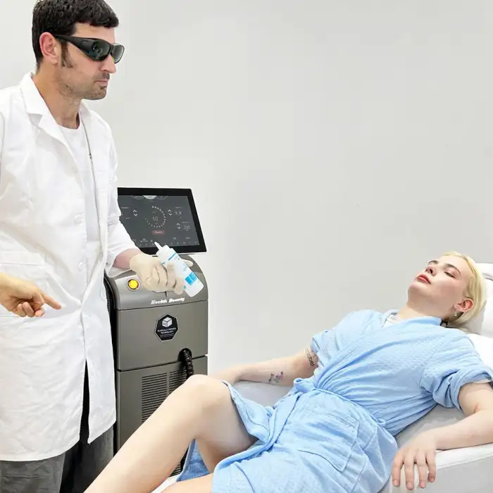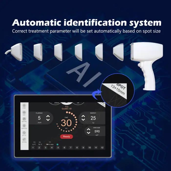 The machine has a robust output power of 4000W, enabling fast and efficient hair removal treatments.