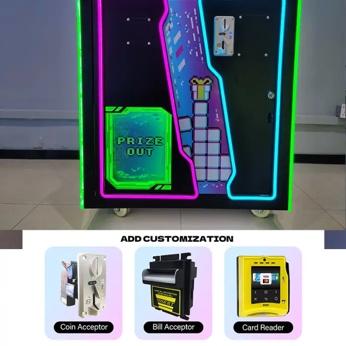 The Brick Stacker is a skill-based arcade game where players stack bricks to win prizes. It features a robust design and is suitable for players of all ages.