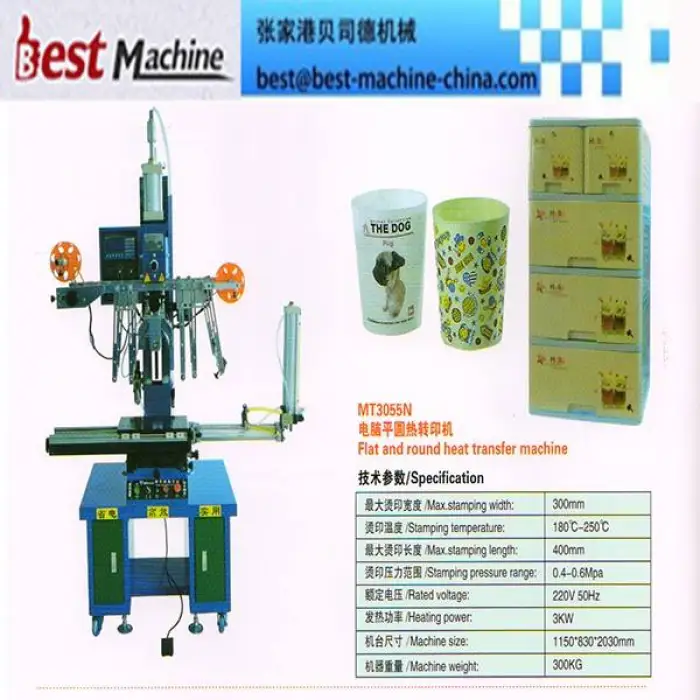 The BST-3055N is suitable for decorating various products such as tubes, bottles, cups, and tanks for branding.