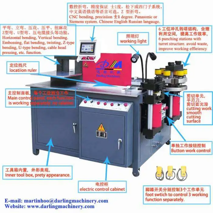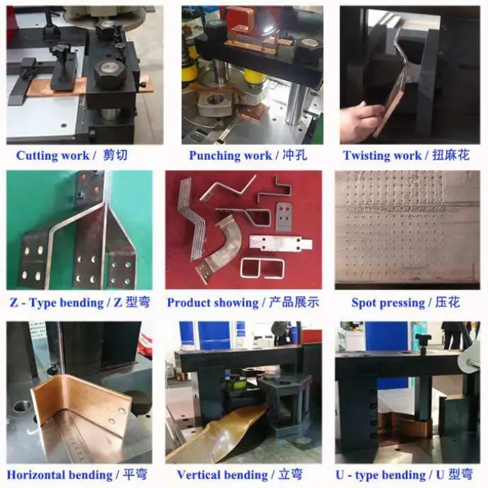 The primary function of this machine is to cut, punch, bend, and twist copper busbars, making it ideal for professionals in the electric power transmission industry.