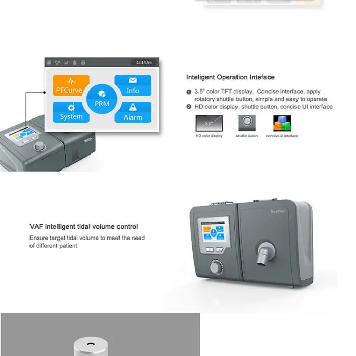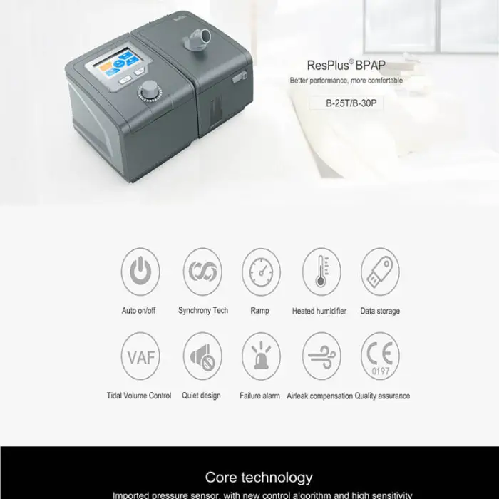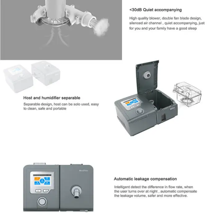 The noise level at 10 cmH2O is also less than 30dB, ensuring a quiet operation.