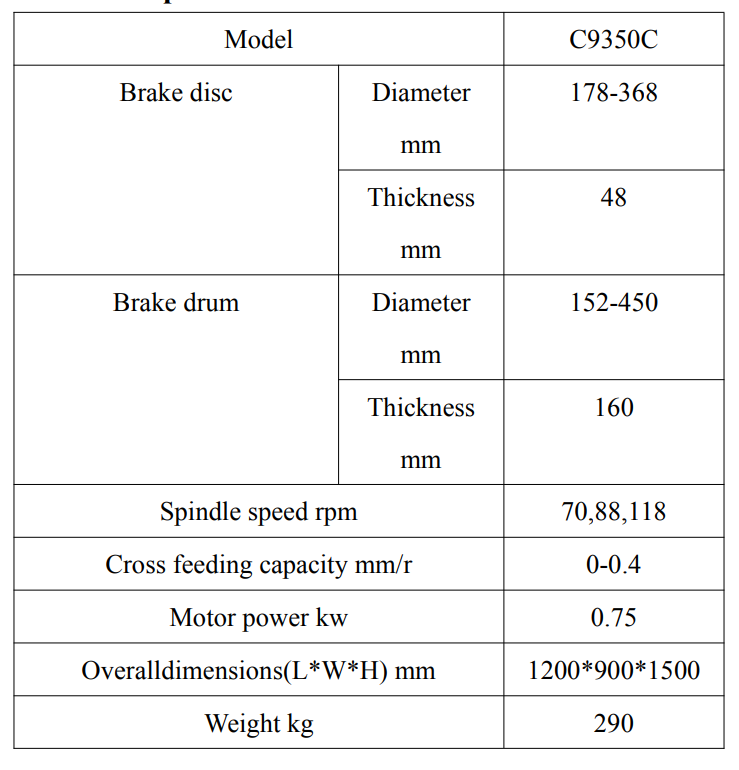 The C9350C Brake Drum Lathe is designed to service a wide range of vehicles, including passenger cars, light trucks, and some heavier vehicles that require brake drum and rotor resurfacing.
