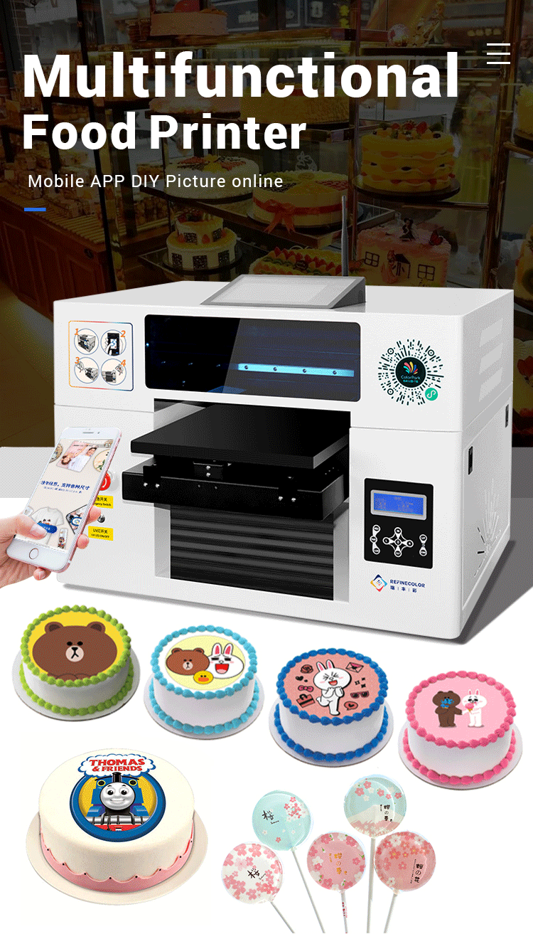 Cake Printer Edible Inks A3 Food Printer Mobile APP DIY Pictures Online Customize Macaron, Chocolate, Cookies