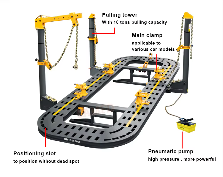 The Car Bench Chassis Straightener is CE and ISO-9001 certified for quality assurance.