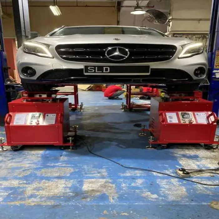 It helps in testing vehicle suspension systems, performing maintenance, and ensuring quality control in automotive workshops.