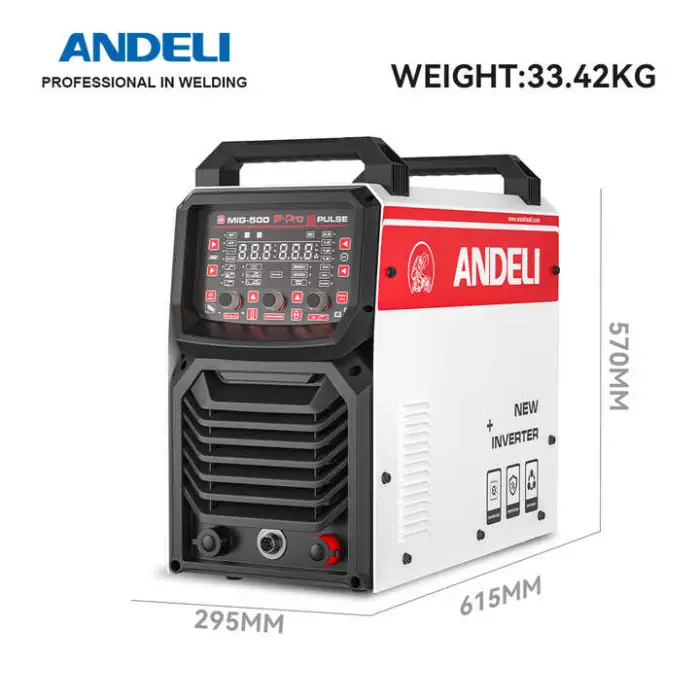 This welding machine is versatile and can handle various thicknesses due to its welding current range of 300-500A.
