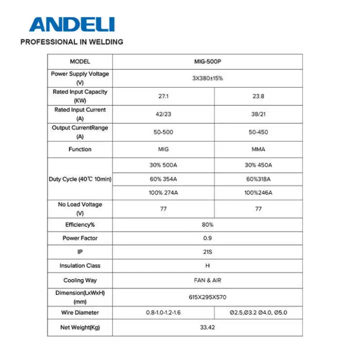 The machine uses a short circuit transfer wire melting type for efficient welding.