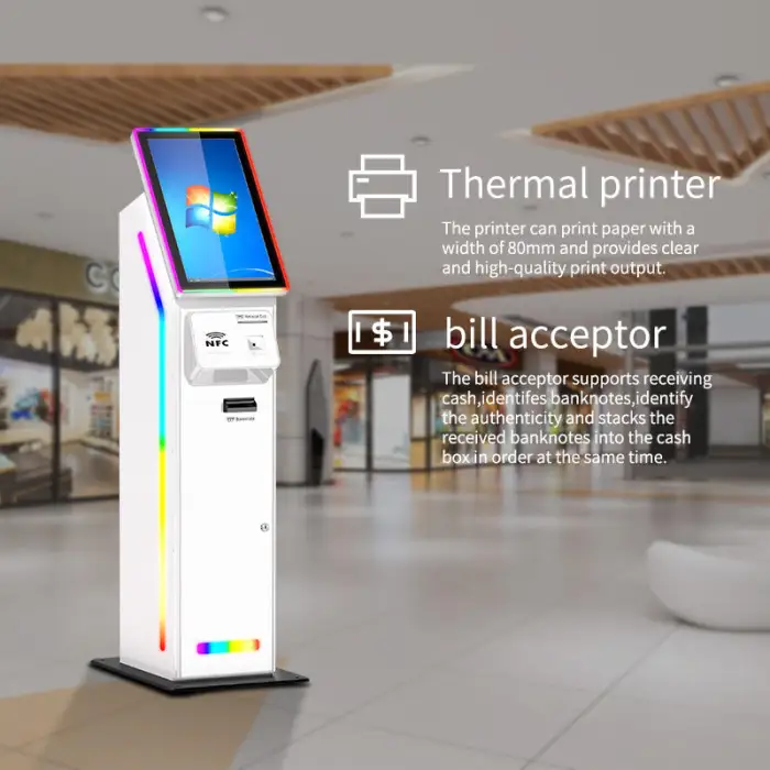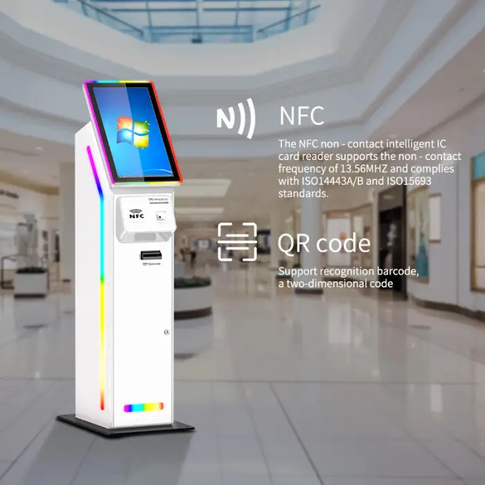 The NFC payment feature allows users to make quick cashless transactions by simply tapping their NFC-enabled devices on the kiosk.